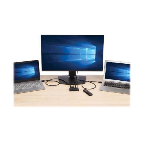 - Switch between 2 source devices with included remote for ultimate convenience