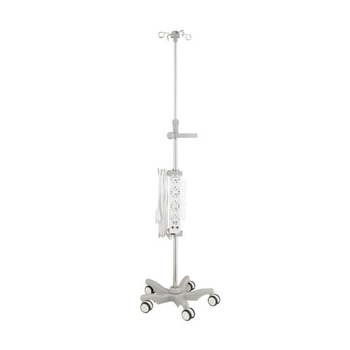 Supplies power to movable plug-connected components mounted to IV poles, mobile carts, crash carts and mobile medical workstations in operating rooms and patient-care areas.