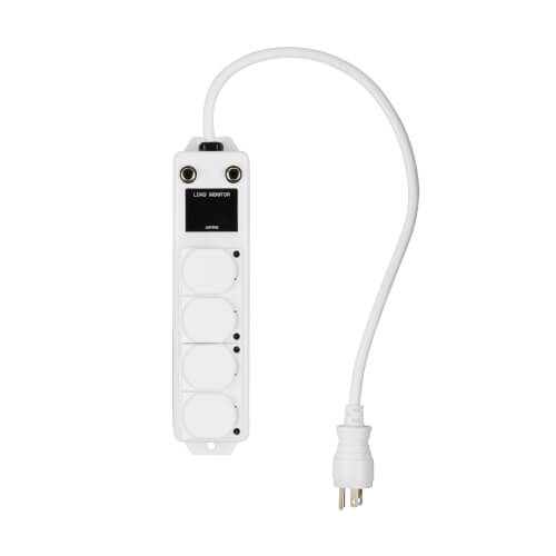 This power strip features an electronic two-digit load monitor that lets you know if the strip is close to reaching or exceeding National Fire Protection Association (NFPA) 99 standards (“The sum of the ampacity of all appliances connected to the outlets does not exceed 75 percent of the ampacity of the flexible cord supplying the outlets.”). If the rated cord current exceeds the NFPA 99 limit, the load monitor flashes and switches colors to catch your attention from a distance without creating alarm fatigue.