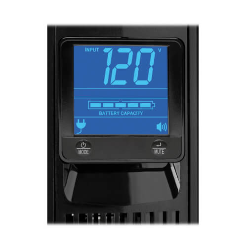 | Switches | ON/OFF/MODE button provides UPS on/off power control (long-press) and advances the LCD screen display (short tap); MUTE/ENTER button provides temporary alarm cancel, plus selection and confirmation of on-screen configuration options |