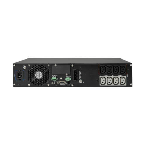 Eight C13 outlets provide connected equipment with pure sine wave AC output and allow you to manage power consumption down to the outlet group level. Power provided by these outlets is filtered to protect connected equipment against damaging surges and line noise. Four outlets are grouped into two load banks that let you shed non-critical loads to extend runtime for critical loads.